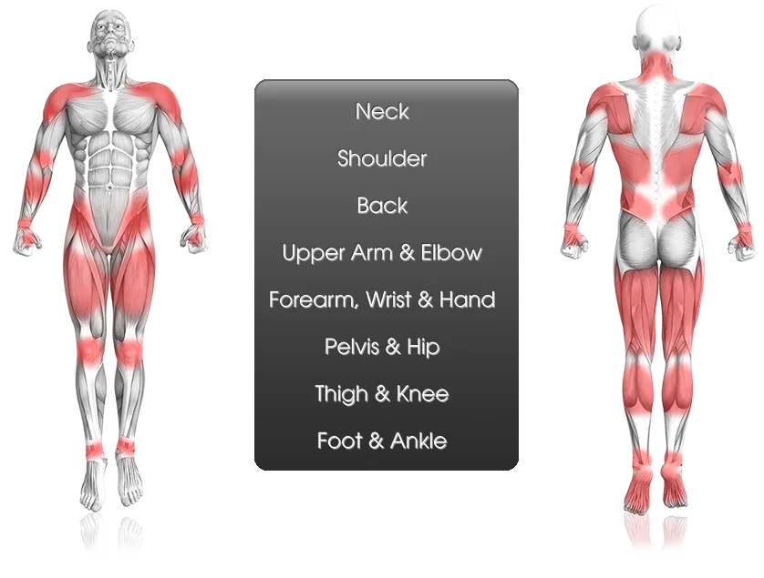 Generally, acute or chronic musculoskeletal pain and/or pain that significantly impairs mobility or quality of life. Areas include: